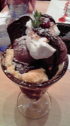チョコアイスと、上に乗っているブラウニー風なチョコのケーキと、カップ下のスポンジ生地が意外にも(?)美味しかったです♪