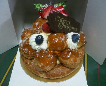 名前は忘れましたが、シュークリームが沢山乗ったパイ生地のケーキ!