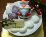 変な眉毛のサンタクロース(母さん命名:変眉)が乗ったクリスマスケーキです。